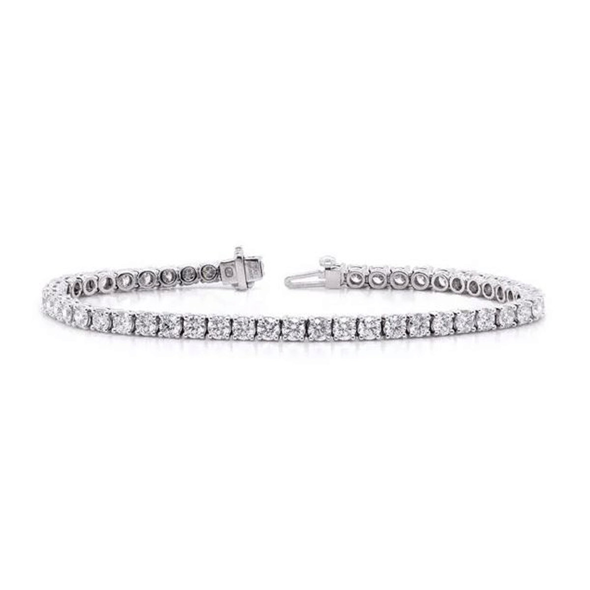 Elegant 14K White Gold tennis bracelet featuring 55 round brilliant diamonds totaling 6.17ct, graded F–H color and VS2–SI clarity. Each diamond is 0.10ct, offering bright, consistent sparkle in a timeless design.
