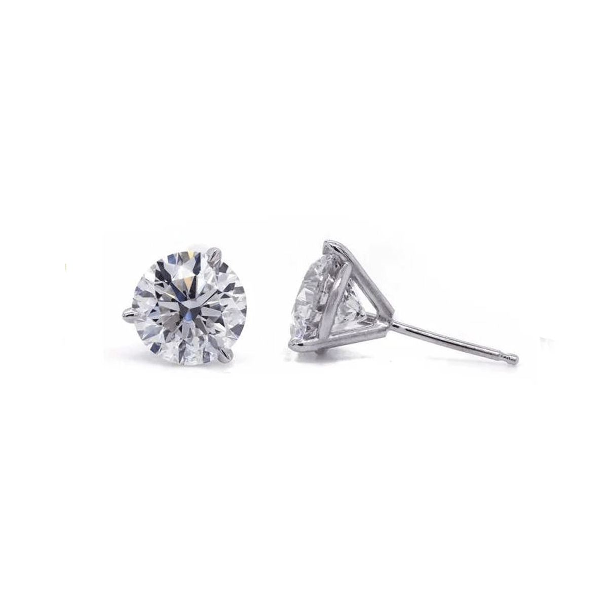 Classic 14K White Gold martini-set studs featuring 1.93cttw GIA-graded diamonds in F–H color and SI2 clarity. Each stone measures approximately 6.2mm, offering bright sparkle in a secure 3-prong martini setting.