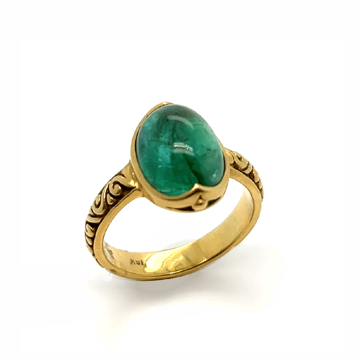 Sophisticated 18K gold ring featuring an oval cabochon emerald — a timeless statement of elegance and luxury.