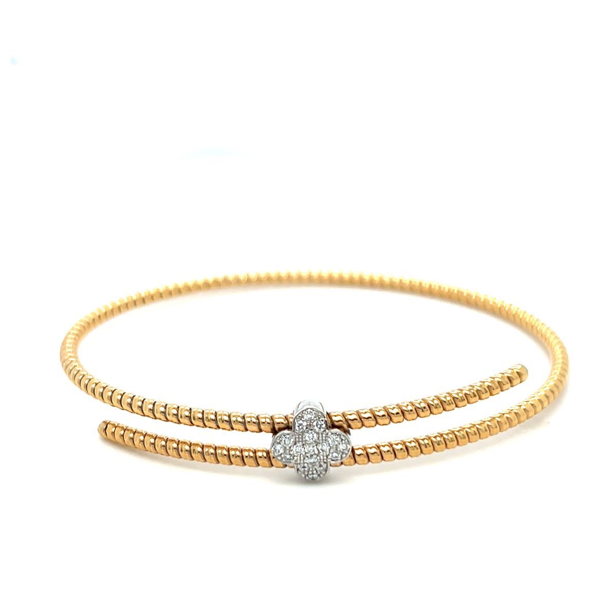 Elegant and versatile, this 18K rose and white gold flexible bracelet features a total weight of 0.11 carats of pavé-set diamonds. A refined touch of sparkle perfect for everyday luxury or special occasions.