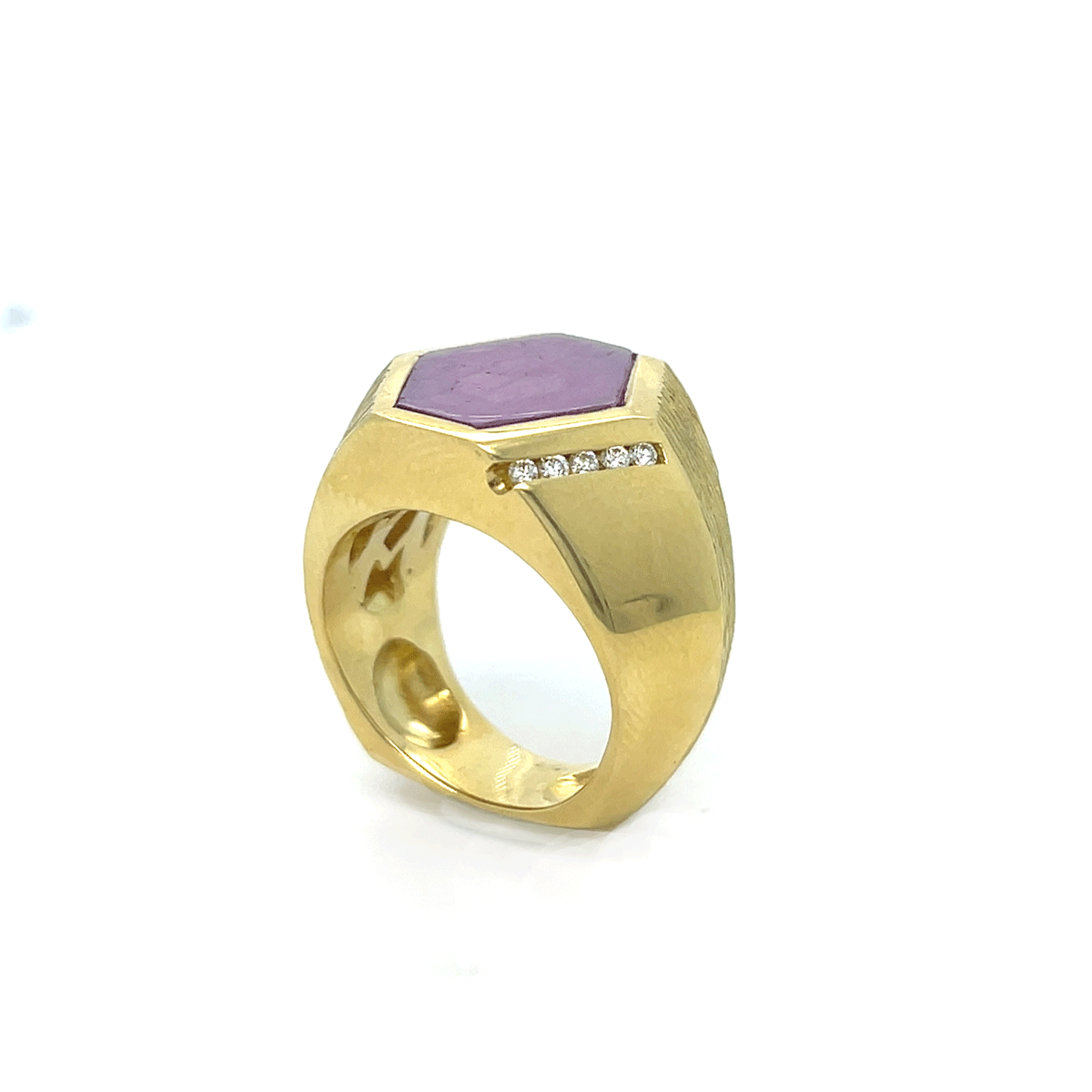 18K Yellow Gold Men’s Ruby Crystal Ring with Diamonds