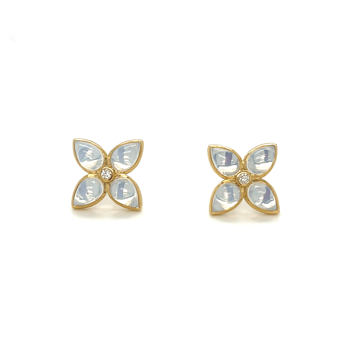 Crafted in premium 18K yellow gold, these Mogul earrings showcase a luminous 3.5ct moon quartz complemented by sparkling diamond details.