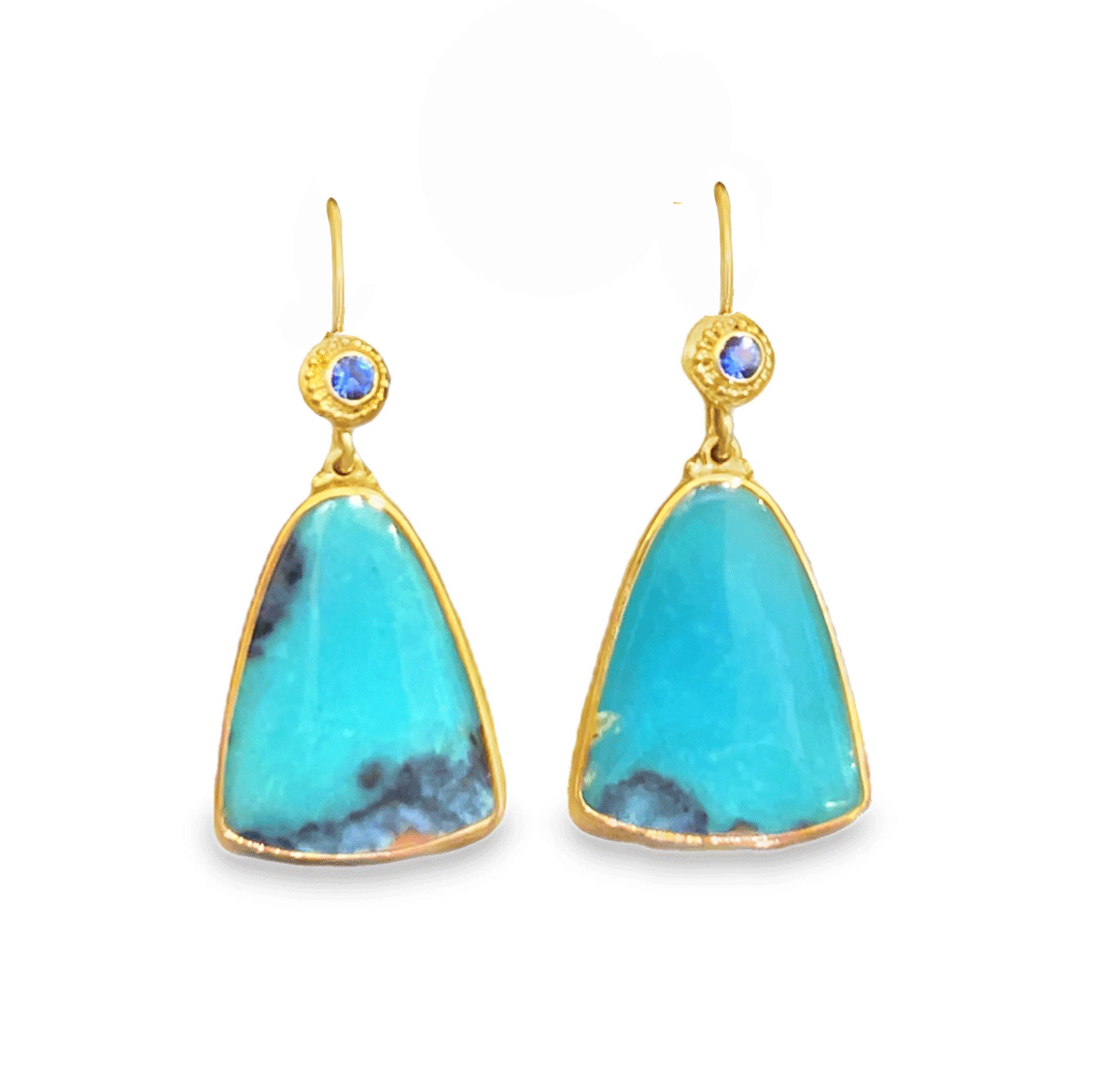 22k/ 18k Yellow gold 0.14ct Chrysocolla, blue Sapphire earrings