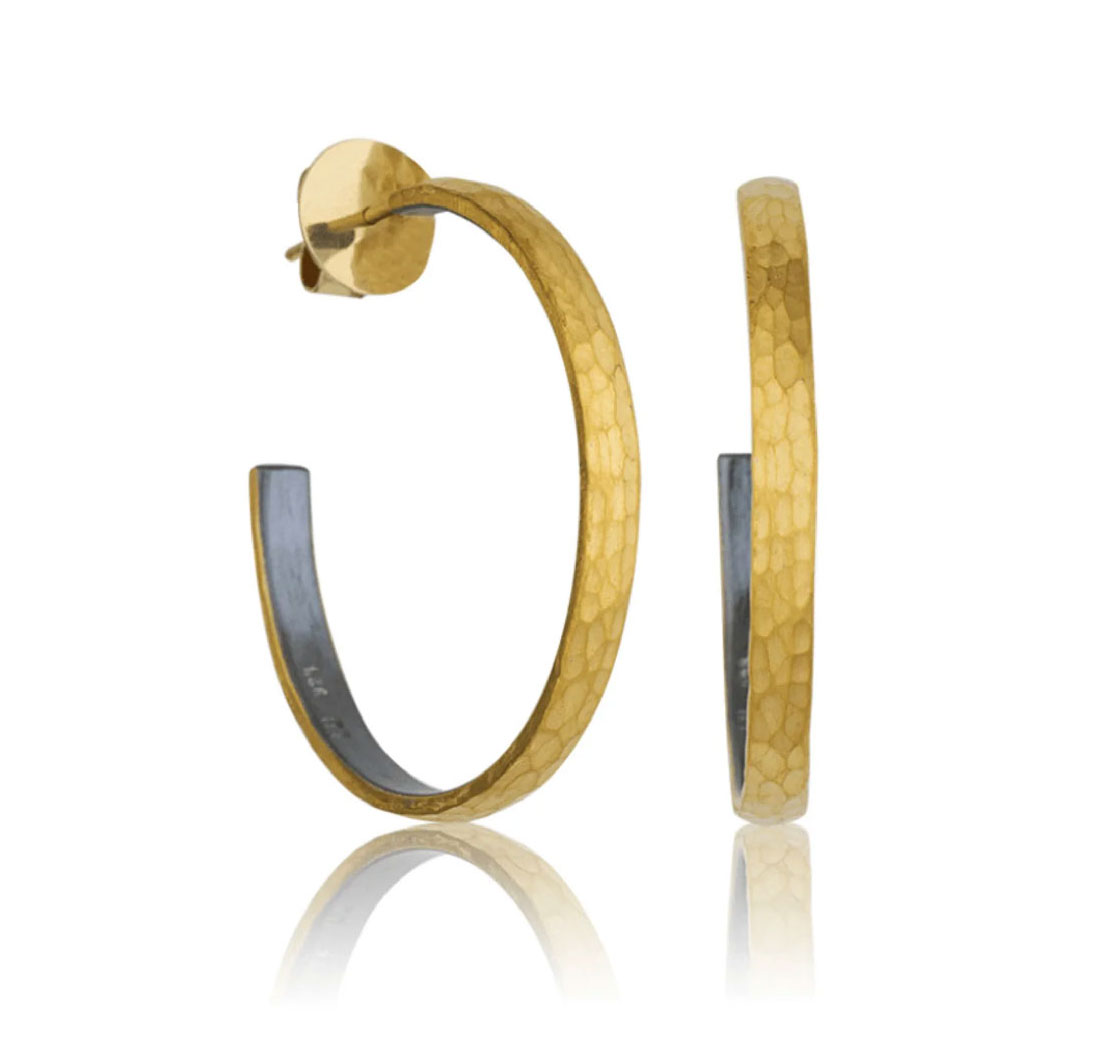 Striking oxidized Sterling silver hoop earrings with 24K gold, blending traditional craftsmanship with a modern fusion design for a bold, elegant look.