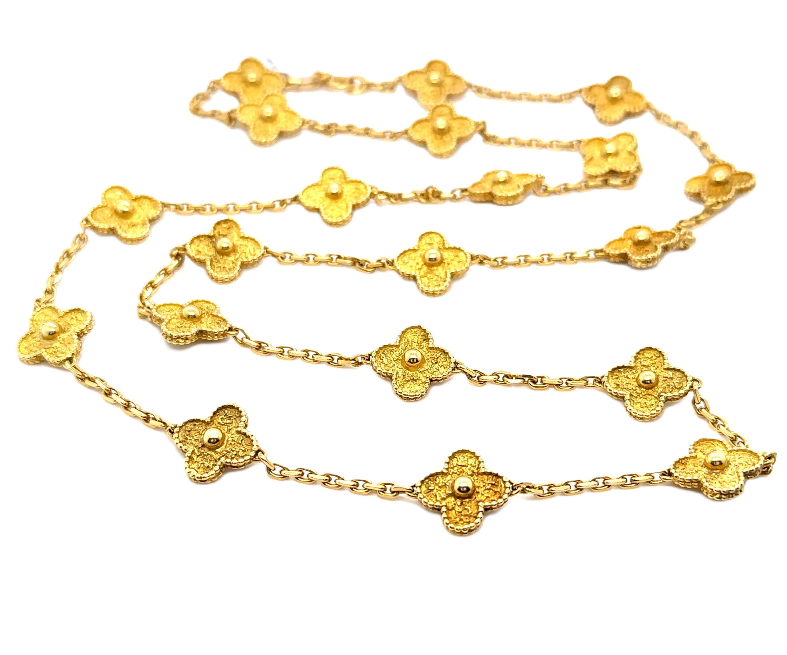 Part of our pre-owned signed pieces collection, a rare Van Cleef & Arpels 18 motif Alhambra necklace in 18k yellow gold